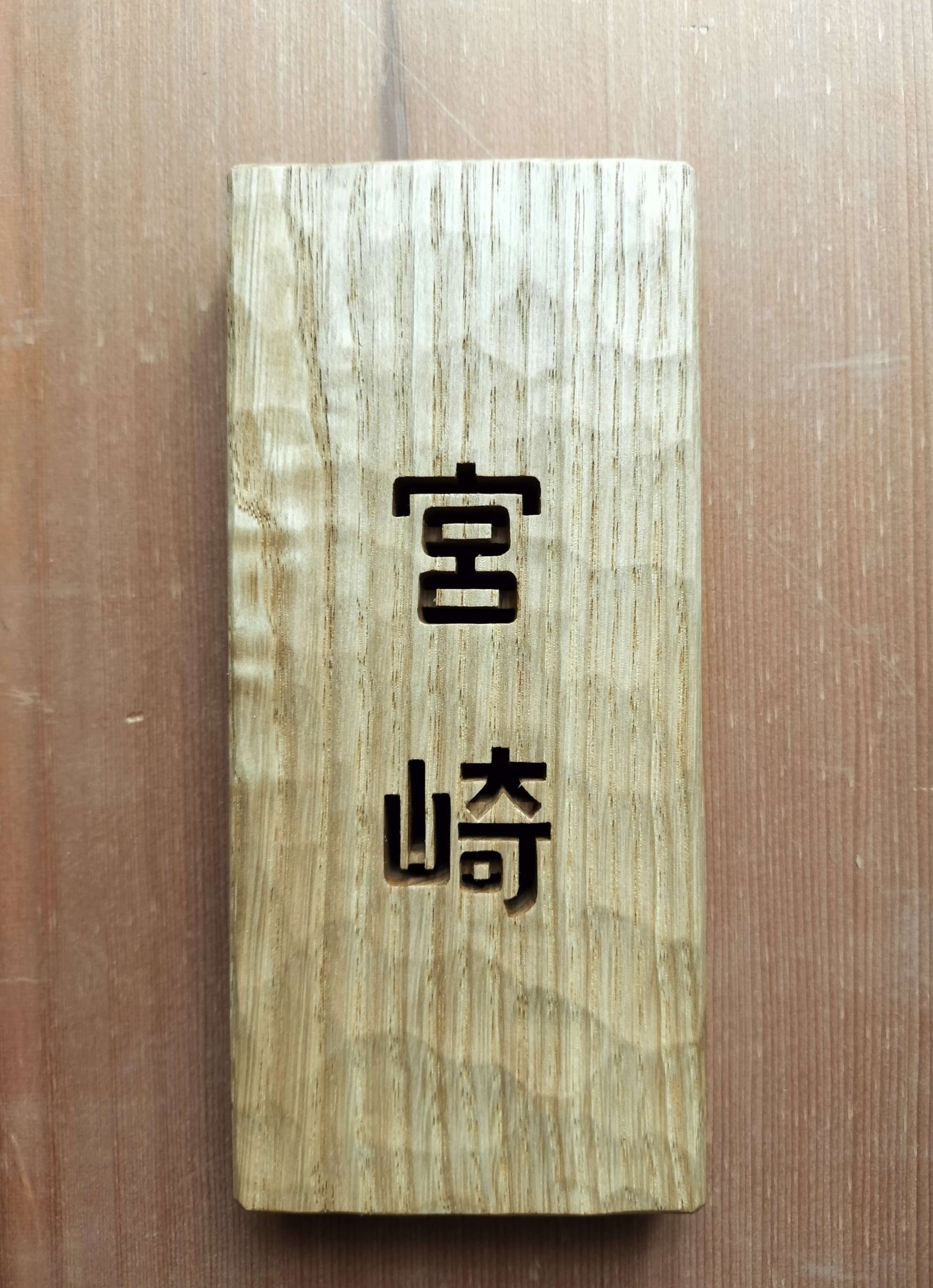 少し前に制作した表札。木材は栗材。フォントはお客様からご提供の文字。角丸ゴシックで味わいのある文字でした。ご覧のように「宮」も「崎」もそのまま切り抜くことはできませんので、抜け落ちる部分…